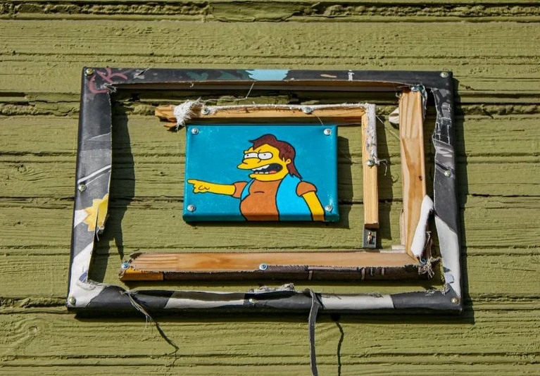 История началась с оммажа на легендарную фотографию The Beatles: по «зебре» шагало всё семейство Симпсонов. Затем ту работу демонтировали. Позже на ее месте появился стрит-арт с Бартом Симпсоном, который в свойственной ему манере обещал не портить чужие картины. Однако судьба этой композиции оказалась похожей — от нее остались лишь рейки.