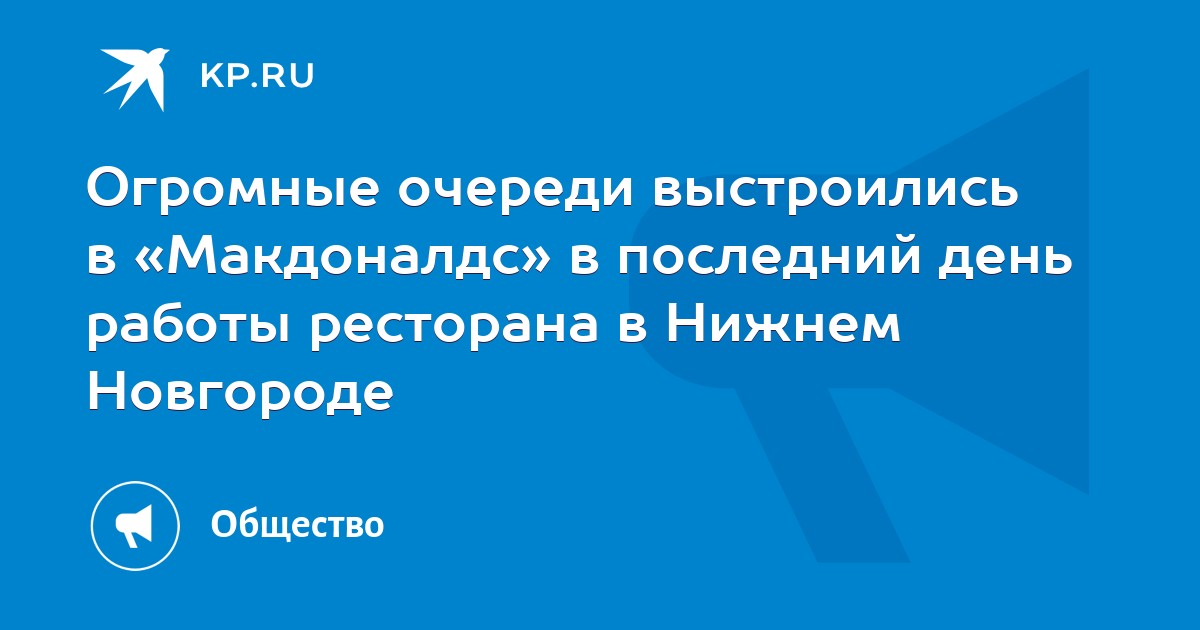 На прошлой неделе сеть ресторанов быстрого питания «Макдоналдс» заявила о закрытии своих кафе по всей России с 14 марта. В этих заведениях и так всегда многолюдно, а в последний день работы в «Макдоналдсы» Нижнего Новгорода и вовсе выстроились огромные очереди. Многие нижегородцы хотели в последний раз насладиться вкусом любимого фаст-фуда.